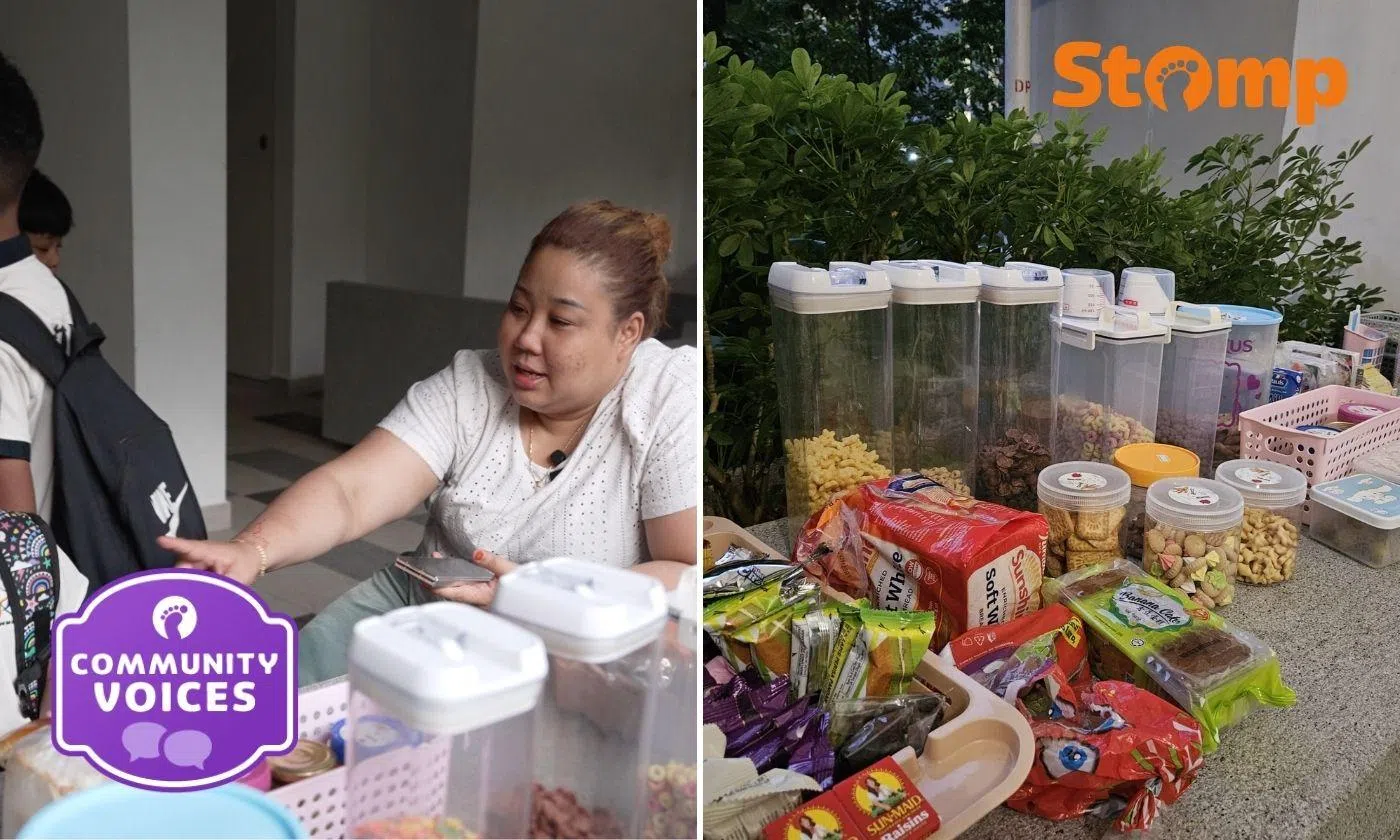 The mother of two told Stomp she fills a trolley with snacks, including biscuits and drinks like Vitagen and milk, attaches a note reading “Grab a free treat!”, and leaves it at the void deck for anyone to take.