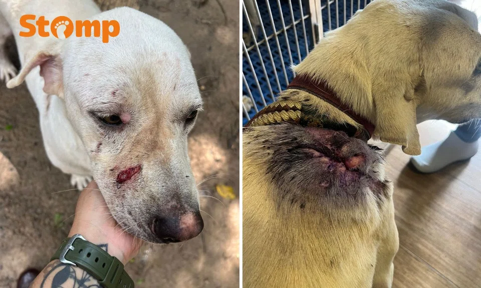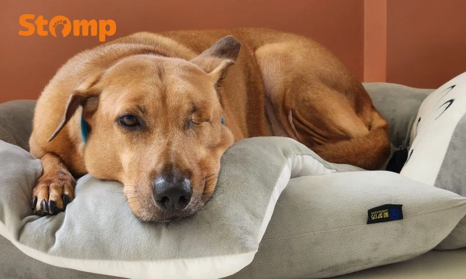 Today, two dogs share Ms Ang's home: Ah Long and Cloud. The former is a one-eyed Singapore Special now aged 15, while the latter is a three-year-old foster dog with a prominent scar.