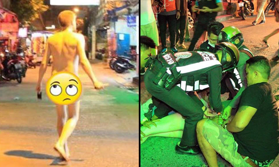 A frenzied naked man took to the streets of Central Pattaya, Thailand with a knife and started waving it at members of the public last Wednesday (Feb 1), at around midnight.