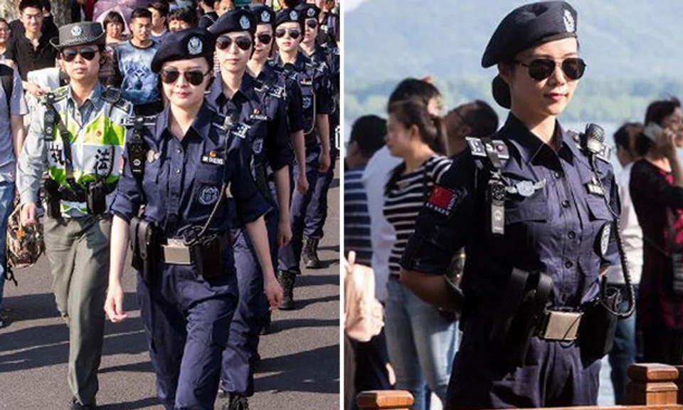 Pretty all-female task force keeps the peace for May Day at Hangzhou