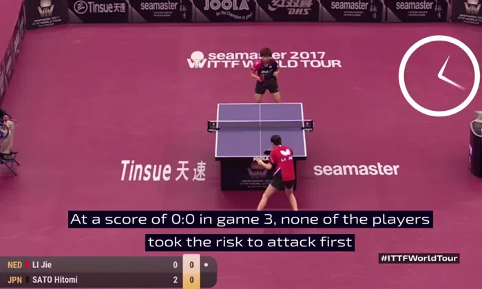 With Dutch veteran Li Jie serving to Japan's Hitomi Sato in the third game of their women's singles match, the paddlers - both are defensive specialists - chose to stick to their chopping styles instead of attacking.