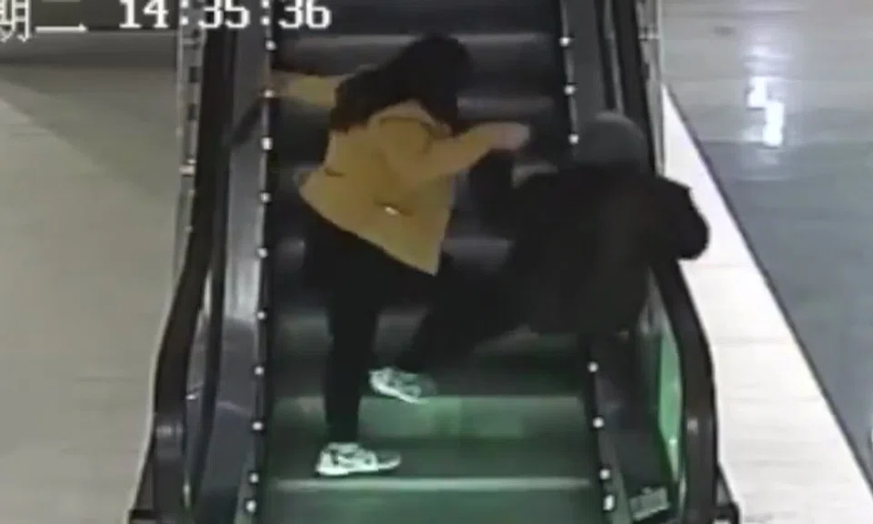 Things could have gone very wrong for elderly woman who fell on escalator in China