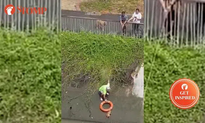 Cyclists stop to save drowning cat in canal at Pasir Ris St 11