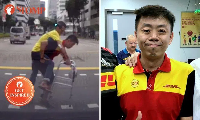 The courier, identified as 40-year-old Anson Chung, told Stomp: "I was on my way to a delivery when I saw the elderly man struggling to cross the road.