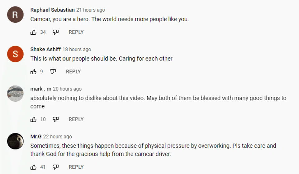 Netizens have lauded a driver for rushing to the aid of a motorcyclist who suddenly fell at a junction along Eu Tong Sen Street on Monday evening (Nov 29).