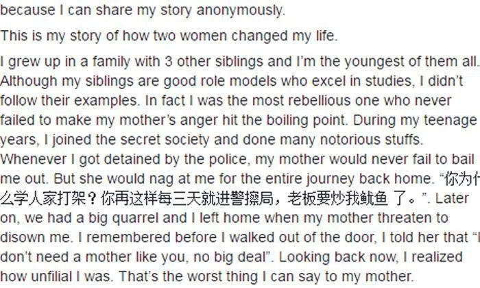 An National University of Singapore student tells his tale of how he got into jail and missed the opportunity to be with his mother on her deathbed while also losing his girlfriend of three years to another man.