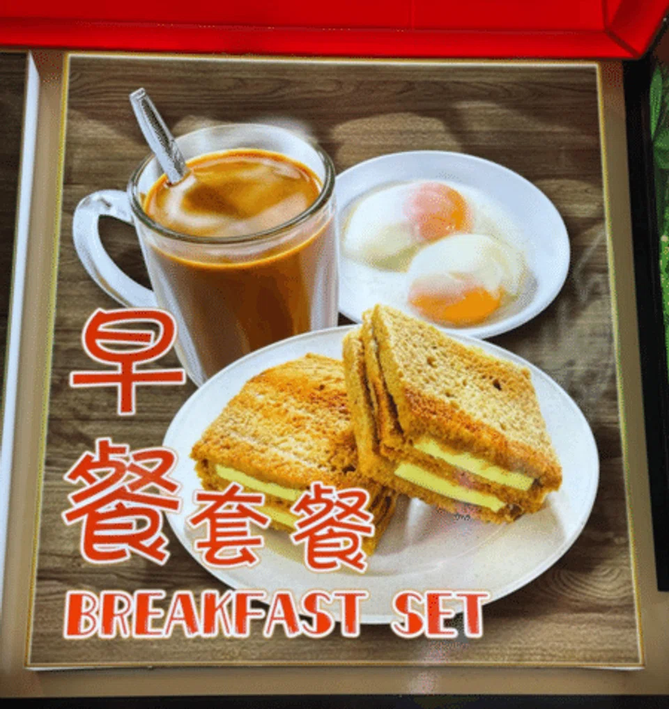The traditional breakfast set offered by the coffee shop includes a hot drink, a slice of toast and two soft-boiled eggs with soy sauce. The set is priced at $4.40 on weekdays.