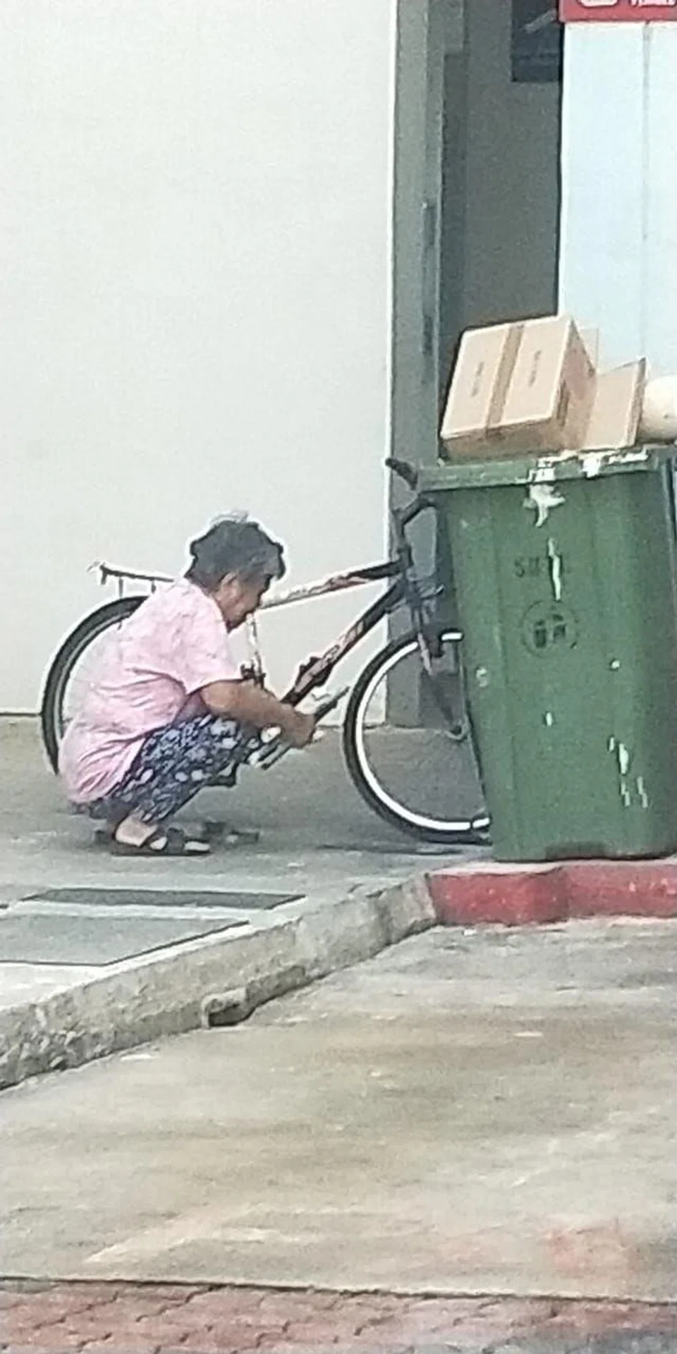 While many Singaporean families gathered and ate together over the Chinese New Year weekend, an elderly woman was seen rummaging through items at a rubbish disposal area in Woodlands on Saturday (Jan 25).