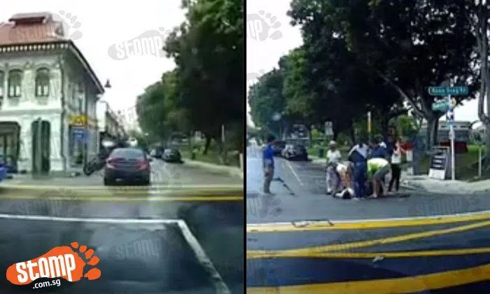 Stomper Yusoff alerted Stomp to an uncredited video, which has been circulating around WhatsApp, involving a motorcyclist and a car.