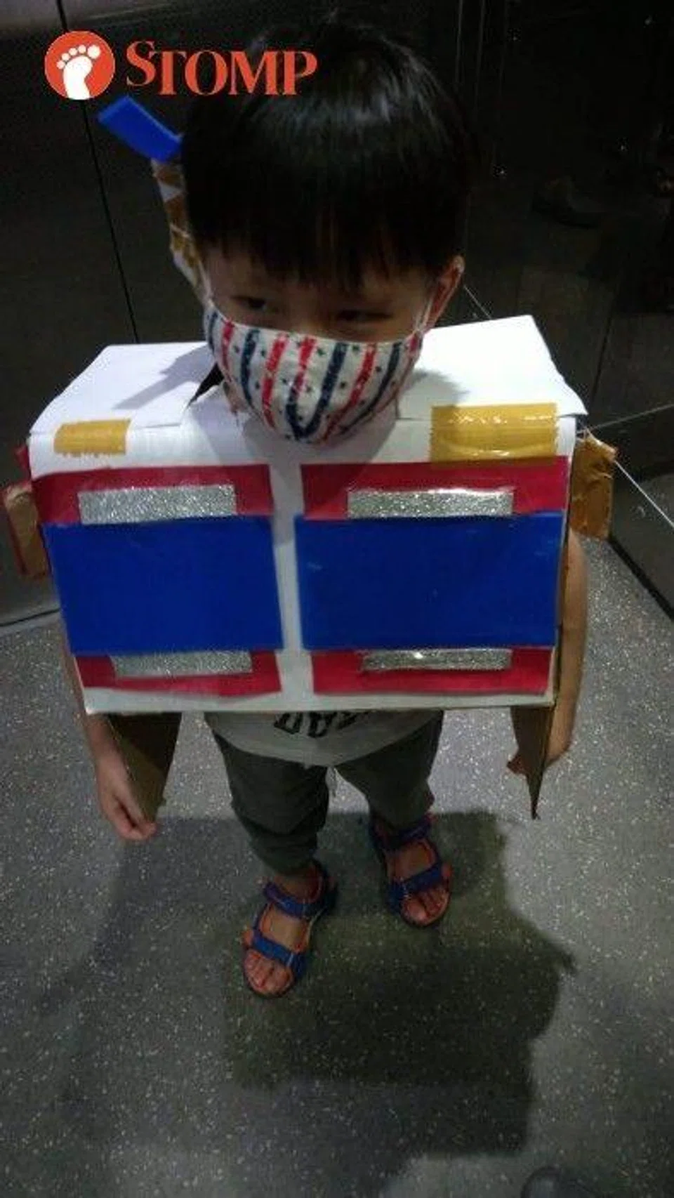 V told Stomp: "My husband took home some empty boxes from his office and I went to a bookstore to get some colour papers to stick on the boxes. We combined Optimus Prime's colours.
