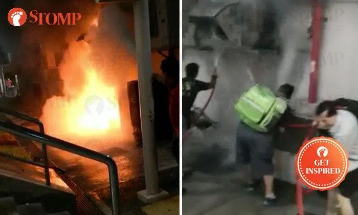 Passers-by extinguish fire engulfing aircon compressor at Redhill with reel hose from nearby carpark