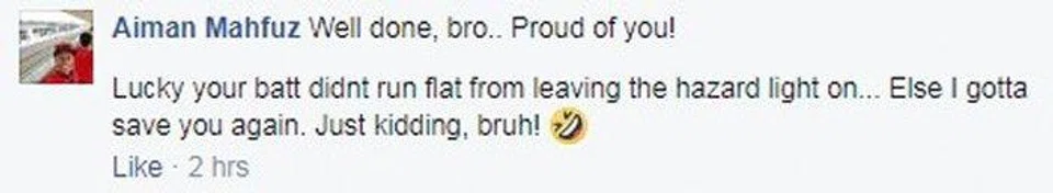 He also told him to get a cloth to press against his wound to stop the bleeding before leaving him with a "Take care ah, bro!"