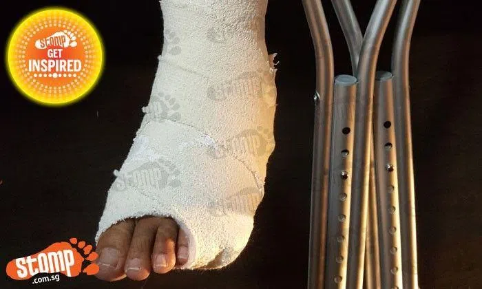 The customers offered to help and she took a cab and made her way to Singapore General Hospital with a swollen foot.