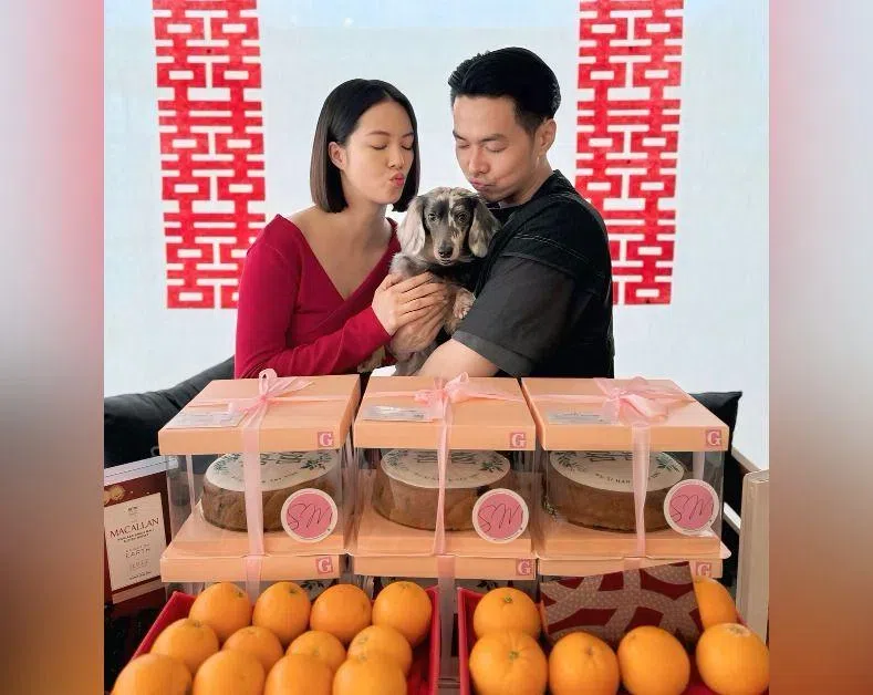 On May 22, local actress Tay Ying, 29, wrote on Instagram: "Sold". It was on a collaborative post with her fiance, chef Wu Sihan, 33. Trays of mandarin oranges, boxes of customised cakes and bottles of Macallan whisky were seen in the pictures.