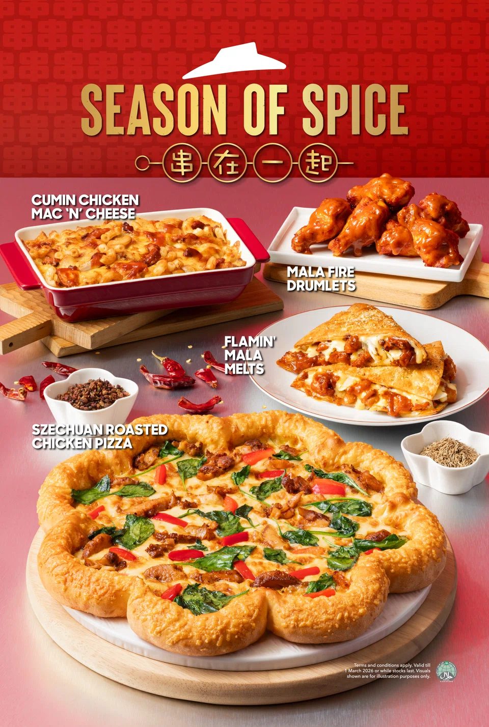 Continuing the string of Sichuan-inspired seasonal specials is Pizza Hut. Leading its CNY lineup is the all-new Sichuan Roasted Chicken Pizza, inspired by smoky Sichuan barbecue skewers.