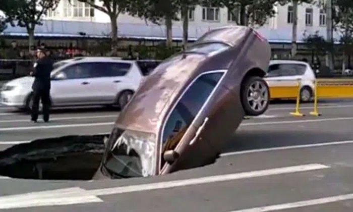 The owner told the media that he was waiting at a traffic light when the tragedy occurred. He was about to accelerate when the road suddenly caved in.