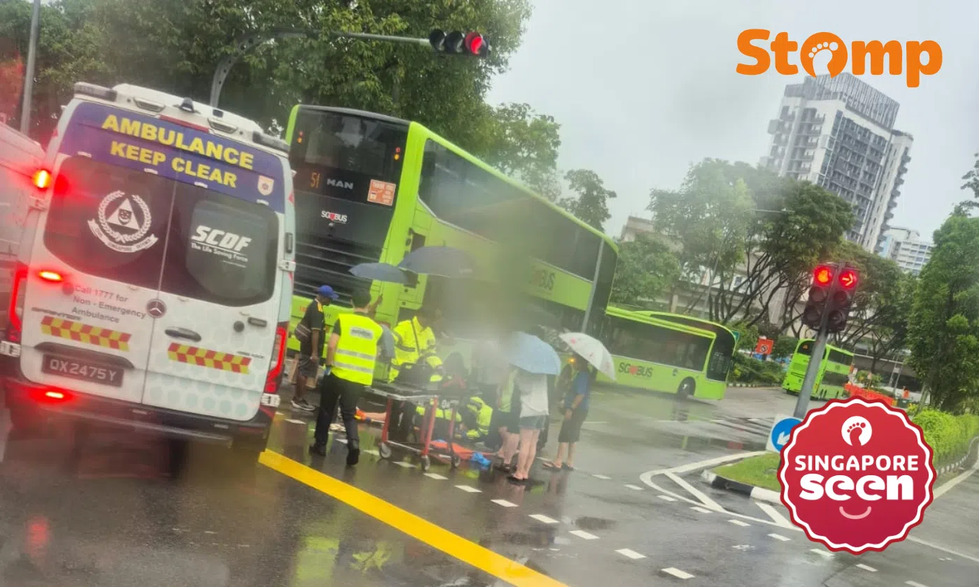 An SCDF ambulance and an SBS Transit bus service 51 had stopped nearby.