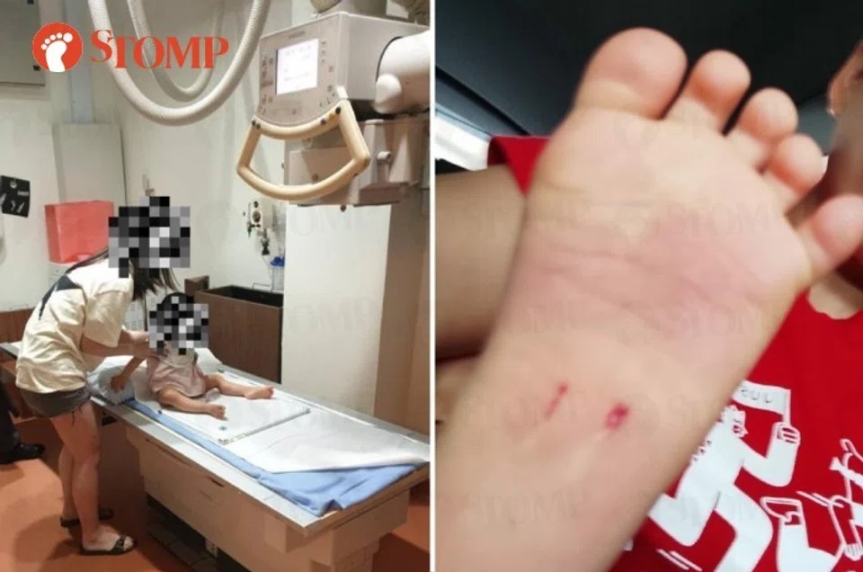 During a visit to the BabySpa at HarbourFront Centre, his 14-month-old daughter's foot was accidentally sucked into a hole in the pool, turning part of her foot purplish.