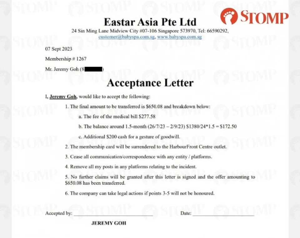 The father told Stomp: "There was no follow-up response after the last phone call I had with their representative which left me no choice but to only accept the compensation of medical bills ($277.58), pro-rated membership fees ($172.50) and gesture of goodwill ($200), which is a total of $650.08."