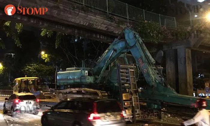2 arrested after excavator arm crashes into overhead bridge along Balestier Road