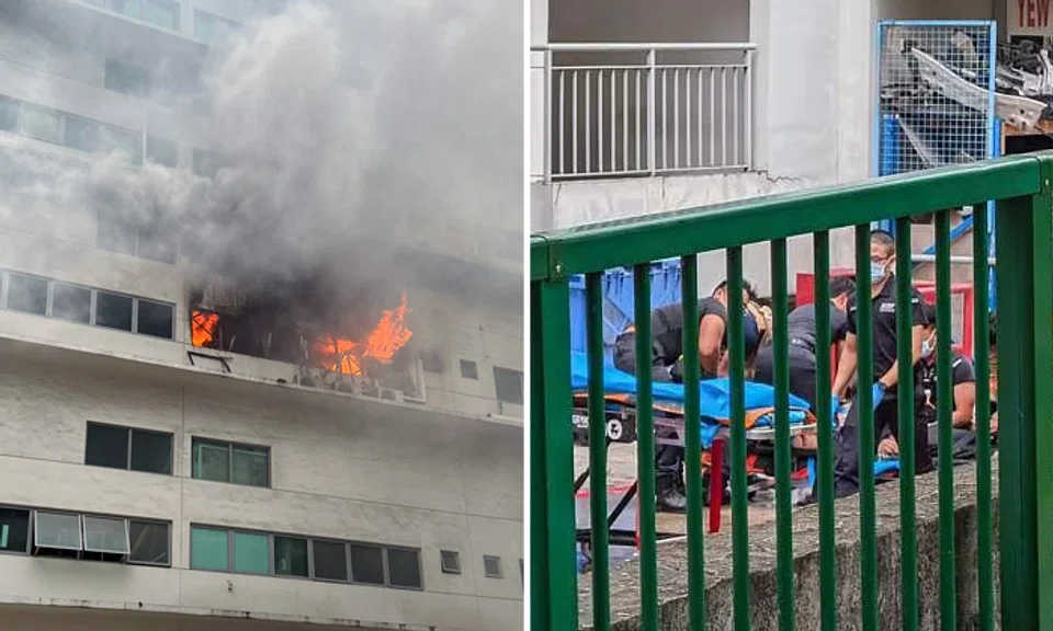 "A unit on the fifth floor of an industrial building was on fire and the whole floor was smoke-logged," said SCDF in a Facebook post.