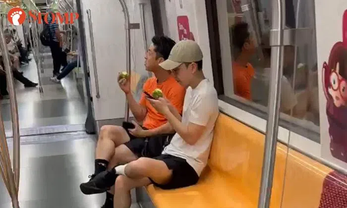 Two commuters were caught eating green apples onboard the MRT train on June 22.