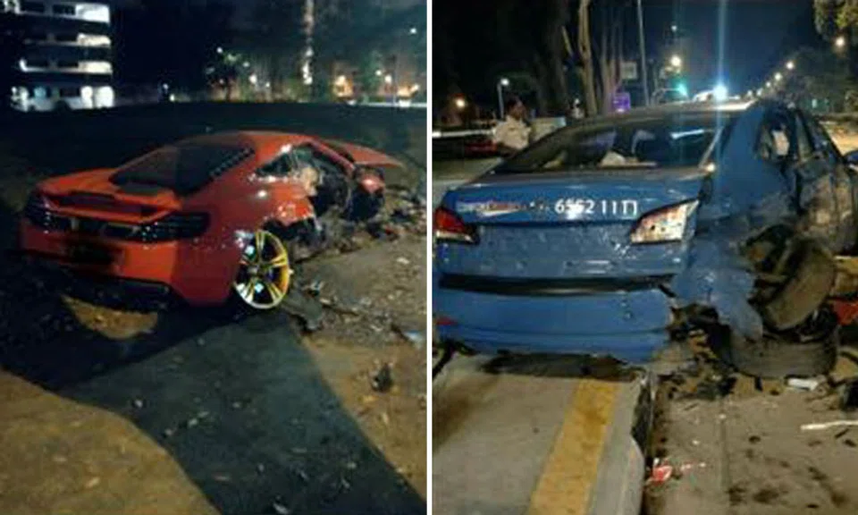 Two drivers were injured after a McLaren and taxi were involved in an accident along Yishun Avenue 1 today (Oct 22).