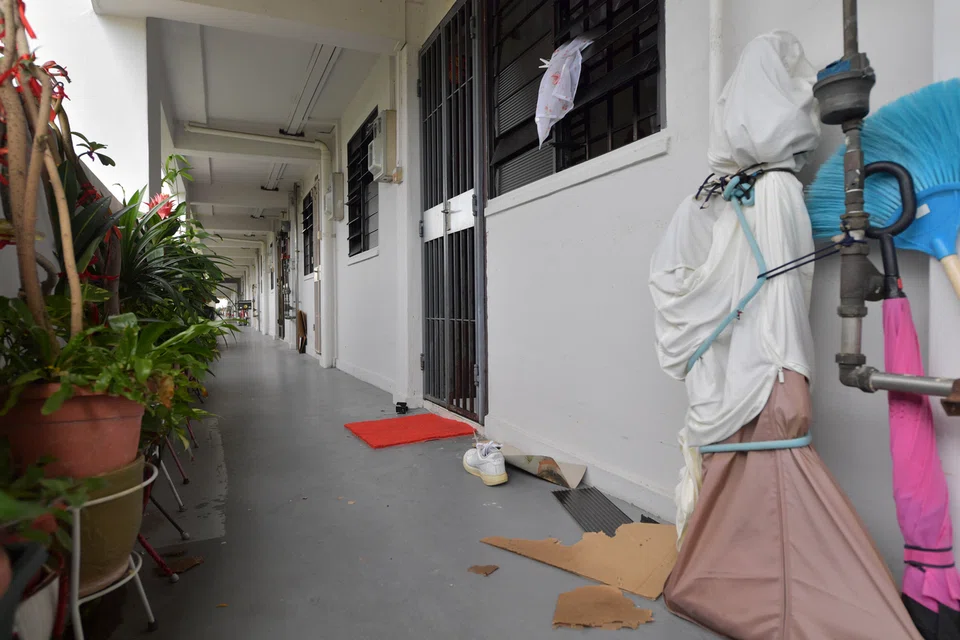 When ST visited the flat on Tuesday afternoon, a woman who looked to be in her 40s was sweeping the floor of the affected unit. She declined comment.