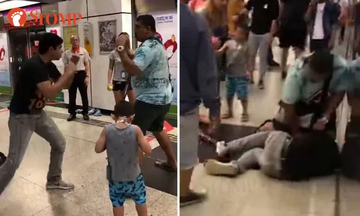 Two men, aged 36 and 20, were arrested for affray at Dhoby Ghaut MRT Station on Sunday (Sep 2) after they were caught on video throwing punches at each other.