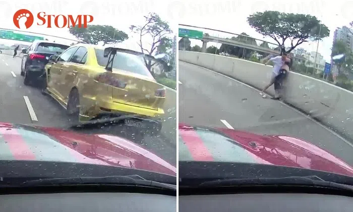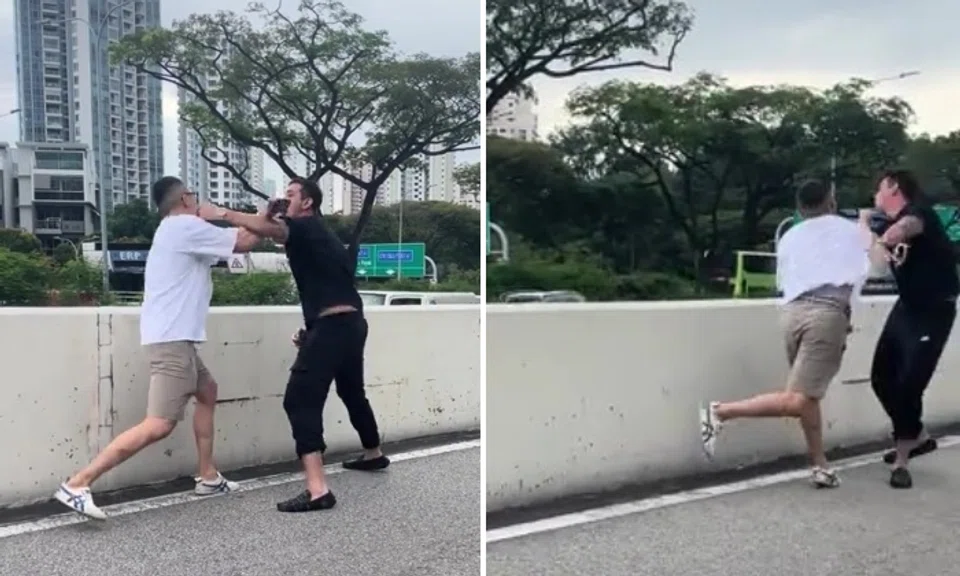"Two men - I would assume the owners of the two vehicles - were fist-fighting on the road, causing a build-up of traffic. They were punching each other, including punches to the face and groin, and one man was even trying to throw the other guy over onto PIE."
