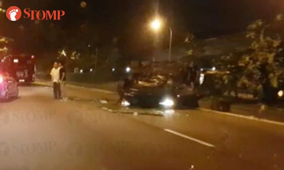 2 men taken to hospital after BMW overturns in accident involving 2 cars along Yishun Ave 2