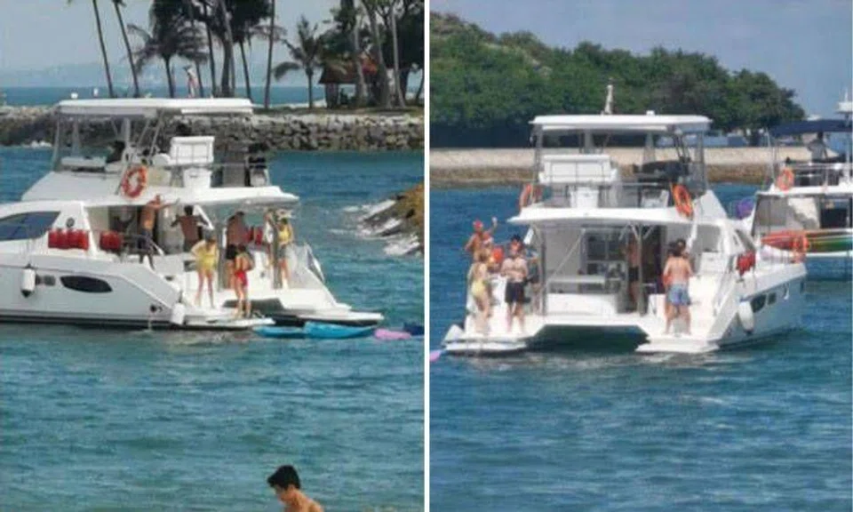 Pictures and videos posted on social media showed the group of merrymakers dancing and intermingling without masks on board a yacht near Lazarus Island, on Dec 26, 2020. PHOTOS: BU HUI YAN/FACEBOOOK