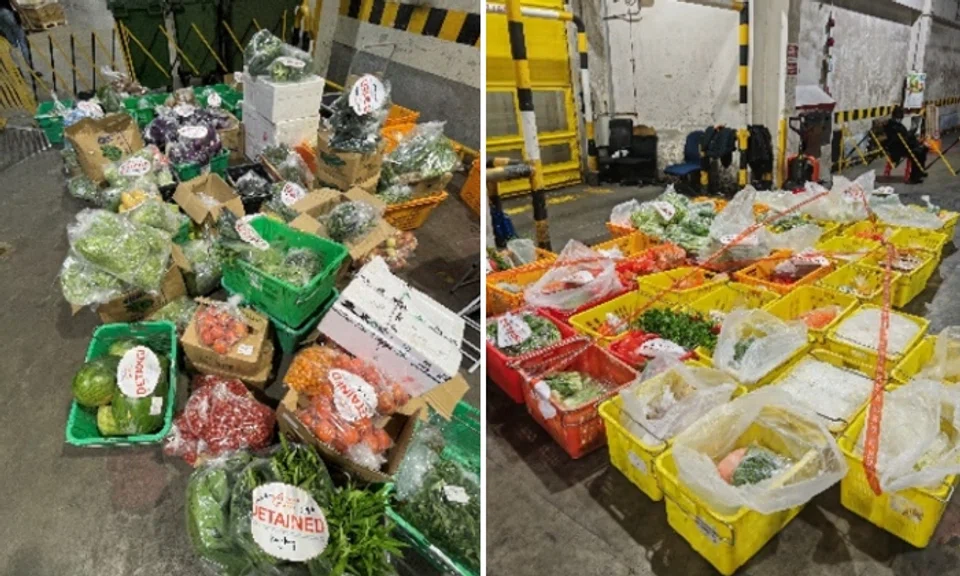 2 trucks checked at Tuas Checkpoint found carrying 1.4 tonnes of illegally imported M'sian produce