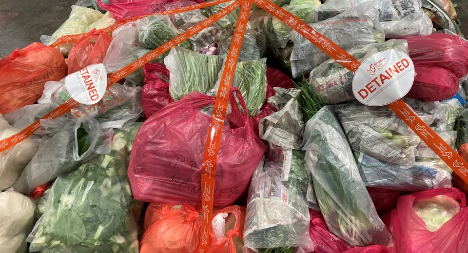 The Singapore Food Agency (SFA) and the Immigration & Checkpoints Authority (ICA) were conducting a joint operation targeting delivery trucks which typically transport fresh and processed vegetables and fruits intended for direct distribution to retailers and customers on Nov 14 and 15.