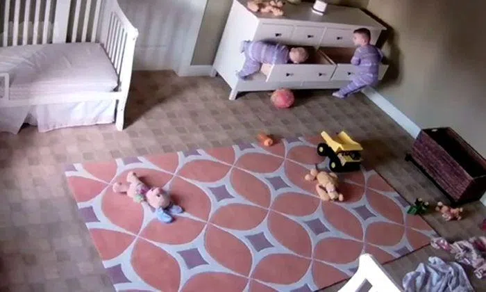 In a 2-minute long video uploaded on Jukin Media on Mon (Jan 2), two-year-old twin brothers Bowdy and Brock Shoff can be seen playing with a cupboard in their bedroom when it collapsed. pinning Brock underneath the corner.