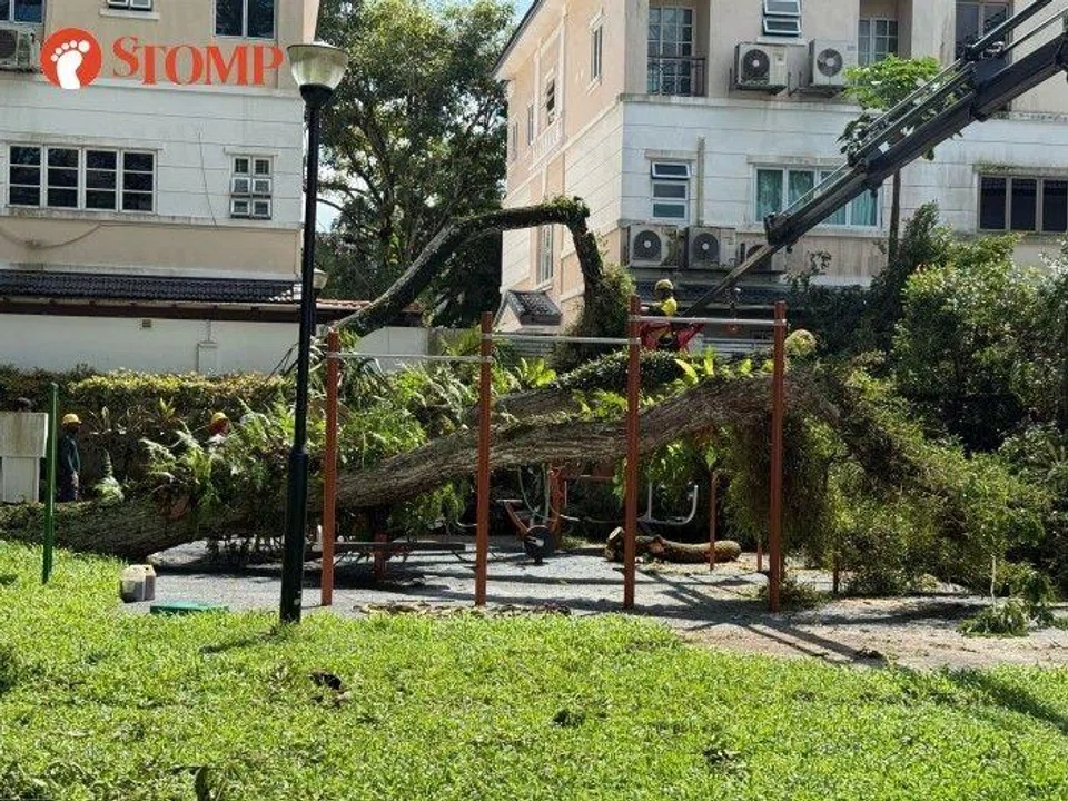 A 20m-tall tree near a playground fell and landed on a private residence at Sixth Avenue on April 21 at 6.35pm.