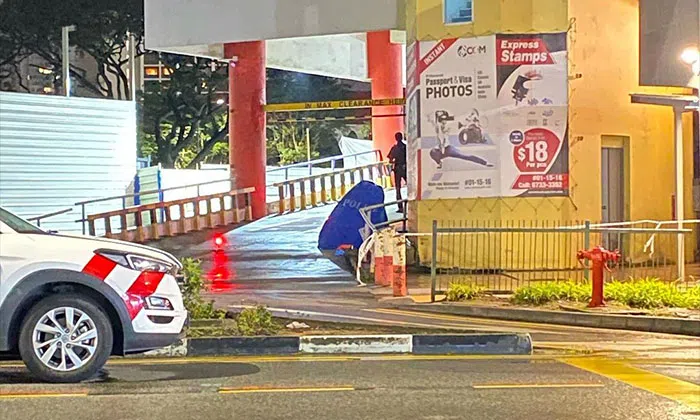 Stomper Lut Shashi Raj (@lutshashi) alerted Stomp to the incident and shared a photo he posted on his Instagram of a police tent on a ramp leading to the building's carpark.