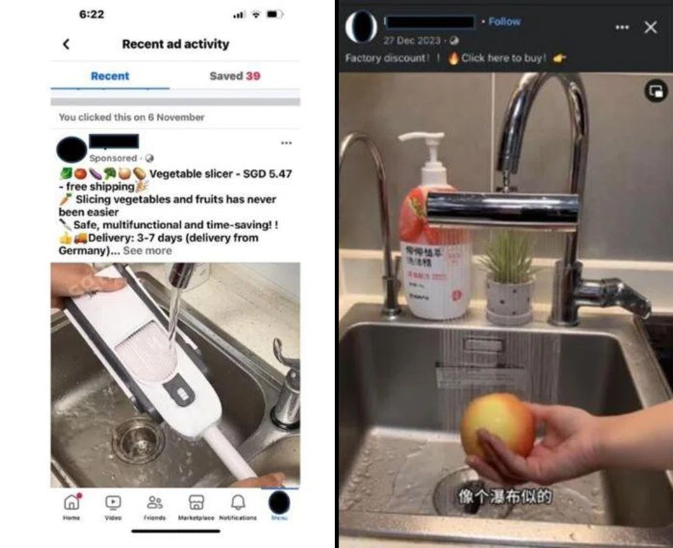 The police shared screenshots of ads offering 27 Nomieo toilet rolls for $3.99 and a vegetable slicer for $5.47 among others.