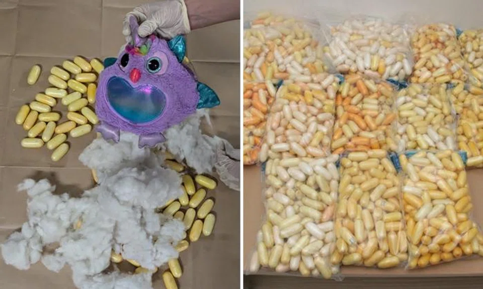 CNB officers arrested the two women when they were exchanging suitcases. Cocaine was later found hidden in stuffed toys in the suitcases.