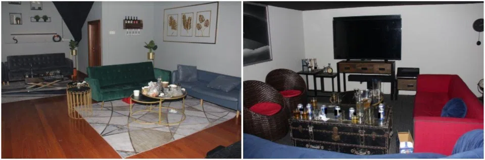 An unlicensed "KTV-concept" outlet was discovered operating within a private landed residential property along Waringin Walk in the Kembangan estate. PHOTO: SINGAPORE POLICE FORCE