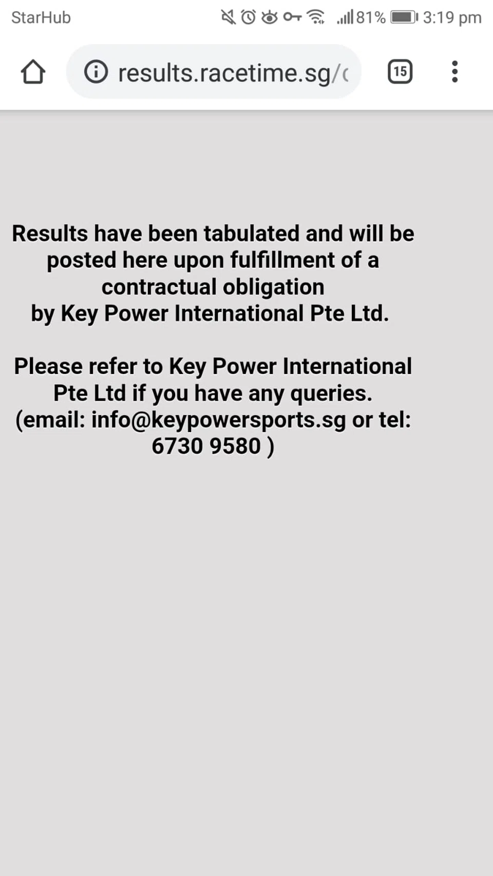 The race results page on their website features an announcement saying that the results have already been tabulated but will only be posted "upon fulfilment of a contractual obligation by Key Power International".