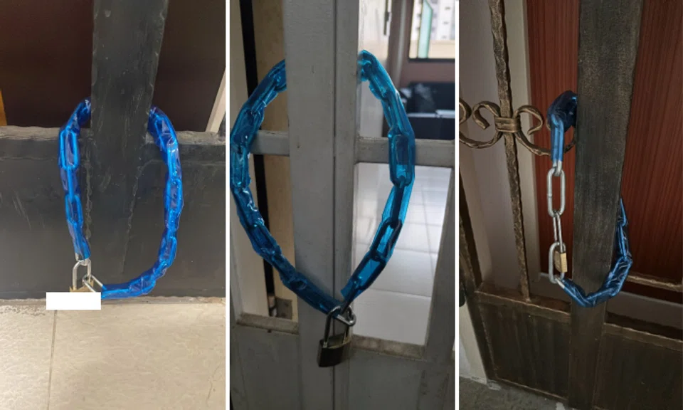 In the third case on Thursday, the police were alerted at 9.10pm that the main gate of a Punggol Road flat was splashed with paint and fastened with a bicycle lock.