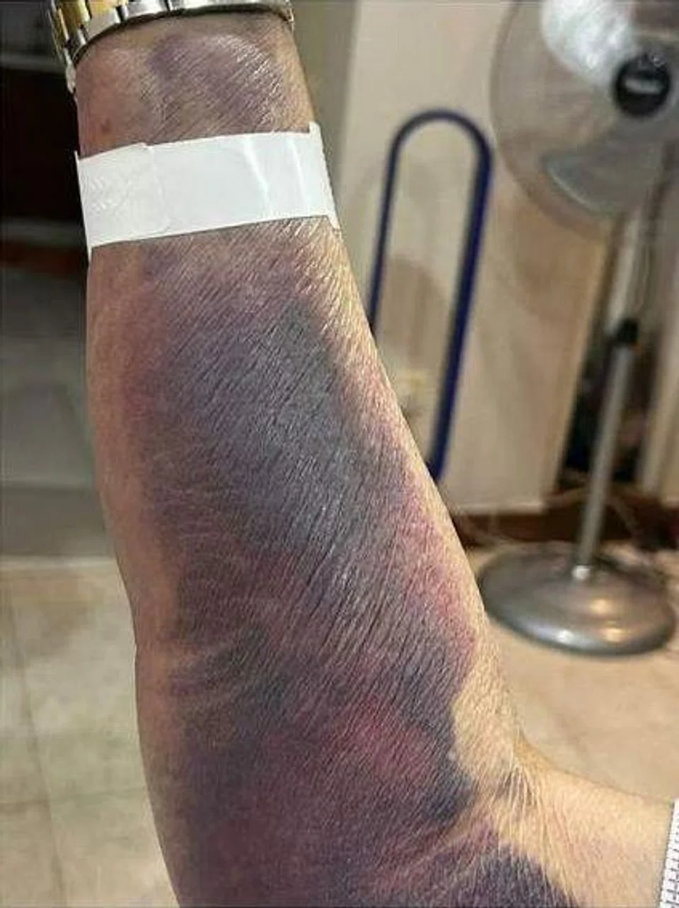 Her father was discharged on Thursday but visited the emergency department on Saturday evening because his bruises worsened, and he felt light-headed.