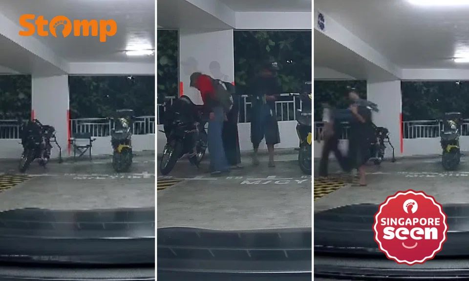 Stomper V shared footage of the incident recorded by the dashboard camera in his car, which was parked facing his motorcycle at Block 527A Woodlands Drive 14.