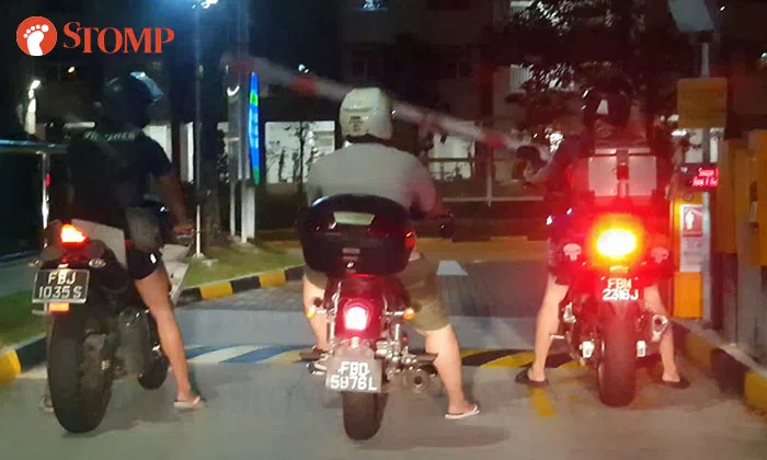 Stomper Carpark King was making his way home from Block 628 Woodlands Drive 62 at about 11.30pm on June 30 when he saw three motorcyclists exiting the carpark at the same time.