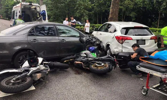 Three people were taken to hospital after an accident involving two cars and two motorcycles along the Bukit Timah Expressway (BKE) on Thursday (July 19).