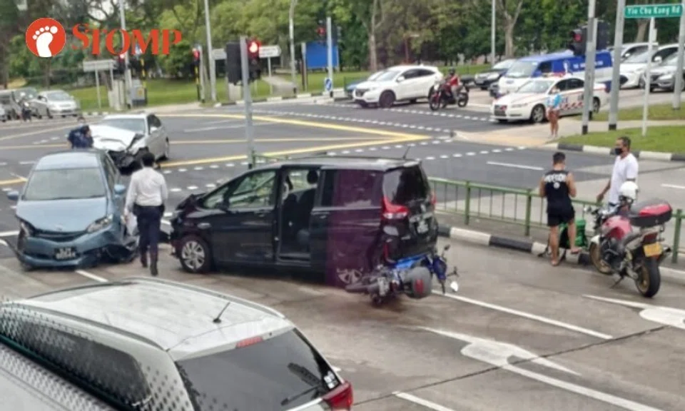 3 taken to hospital after accident involving 3 cars and motorcycle at Yio Chu Kang Road junction