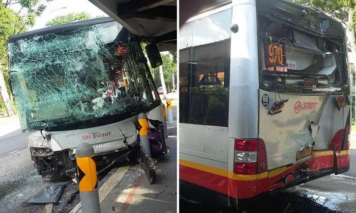 SMRT bus service 970 had stopped at the bus stop when it was hit from behind by SBS Transit bus service 157.
