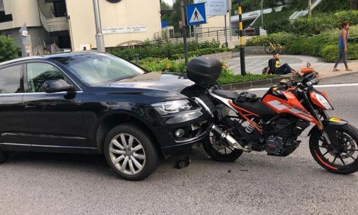 A 34-year-old woman was taken to the hospital after an accident involving a motorcycle and car on Sep 17 at 9am, outside Tanglin Mall in the Orchard Road area.