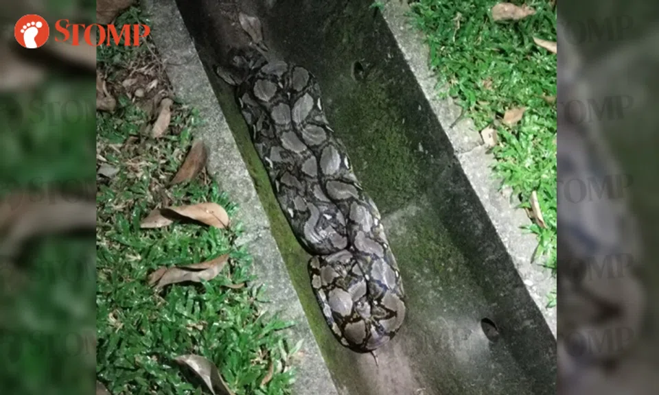 A large python was spotted in a canal along Ulu Pandan Park Connector on Monday night (Nov 5).